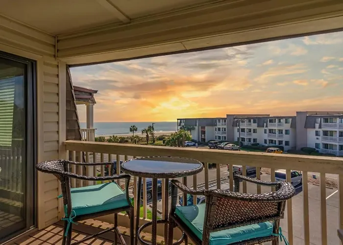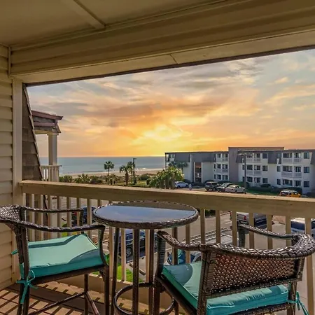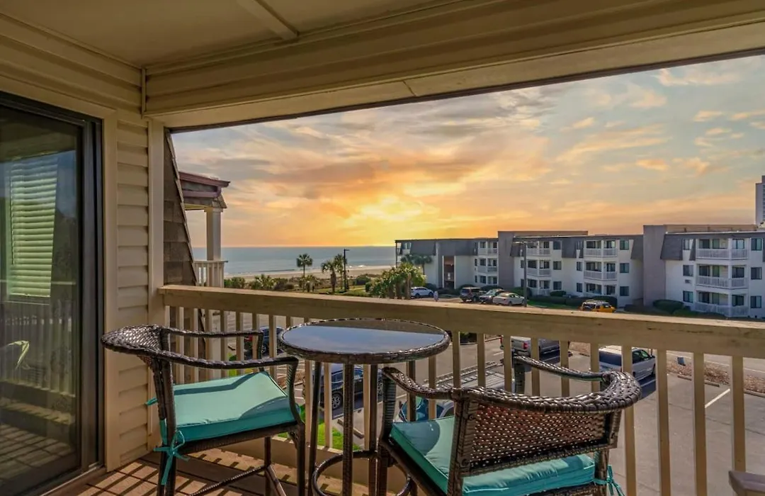 This Myrtle Beach holiday home features seaside views of the sea from a patio.
